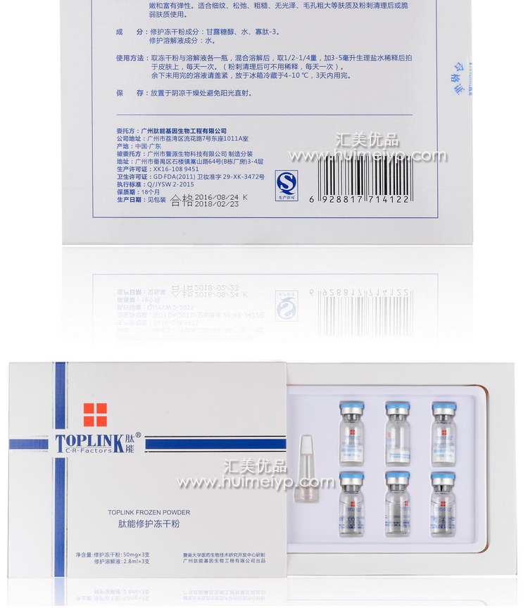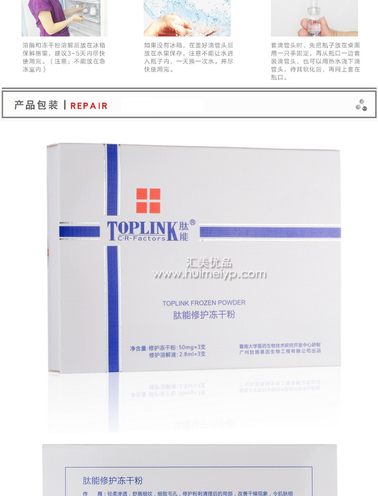 肽能(Toplink)修护冻干粉50mg+2.8ml*3