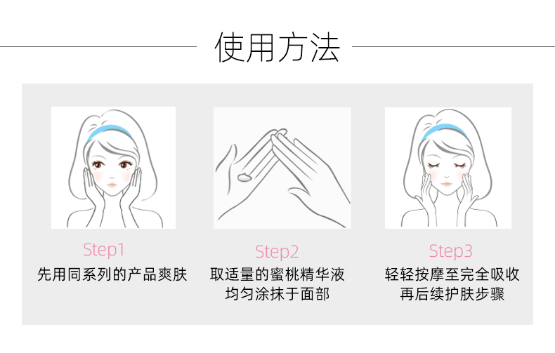 使用方法:早晚洁肤、爽肤后、取适量均匀涂于面部稍加按摩至吸收使用后效果呈现