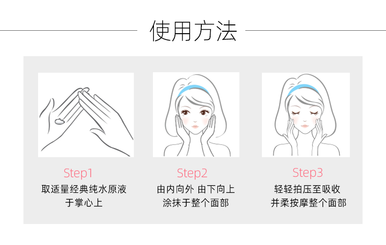 使用方法:任何肌肤、特别针对干燥、缺水性、吸收率差的肌肤使用。
