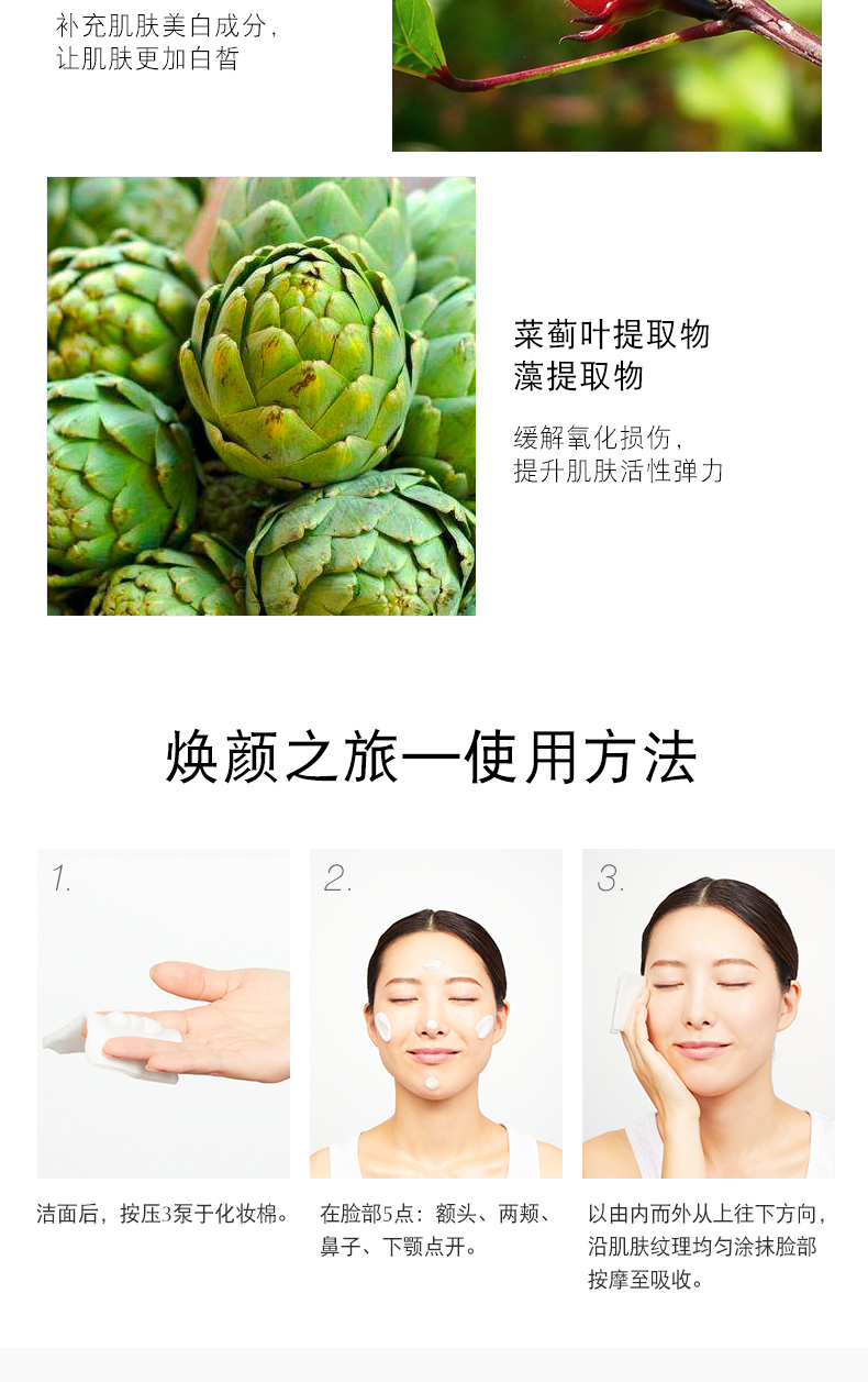 使用方法:洁面后,取适量涂抹面部,充分按摩至吸收即可。