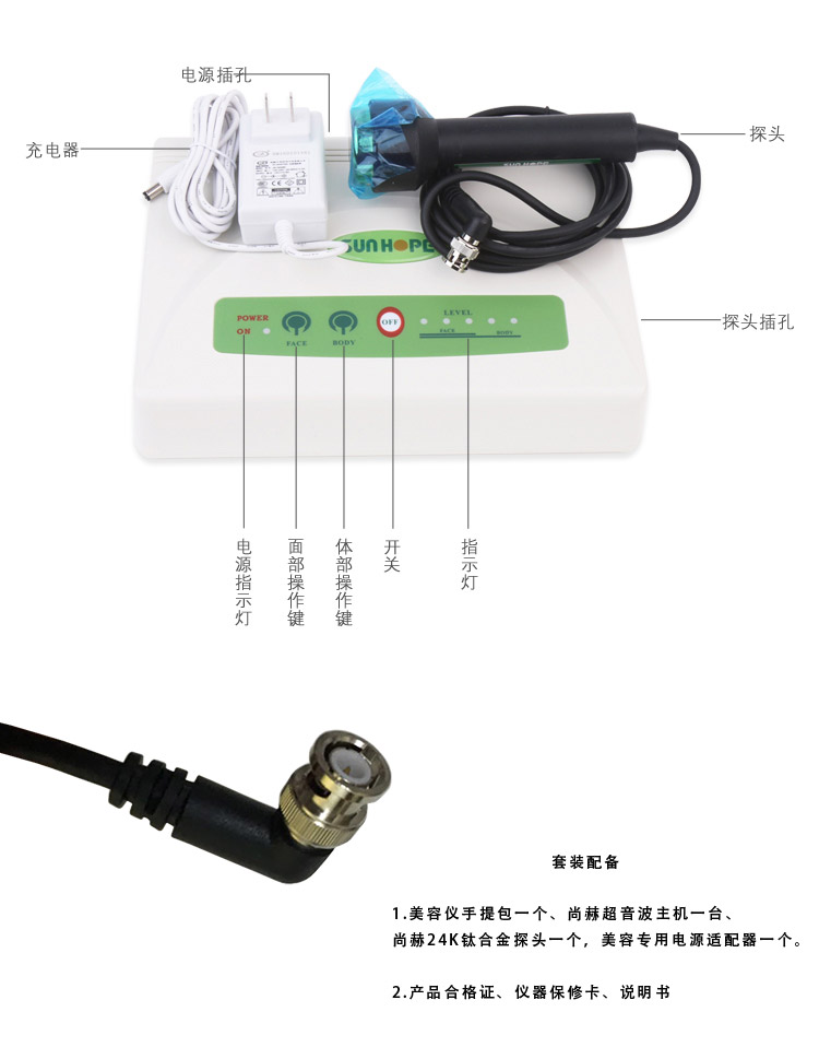 商品规格:手提包*1、主机*1、24K钛合金探头*1、电源适配器*1